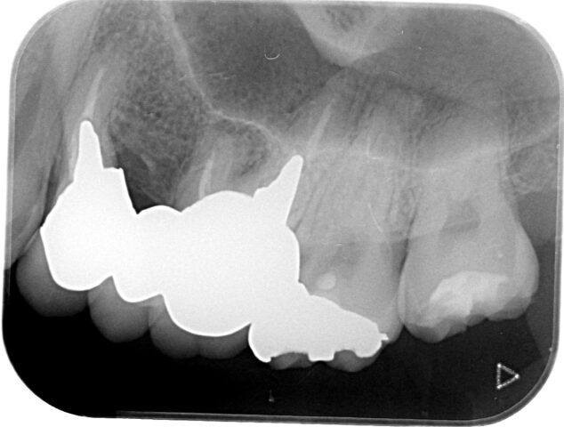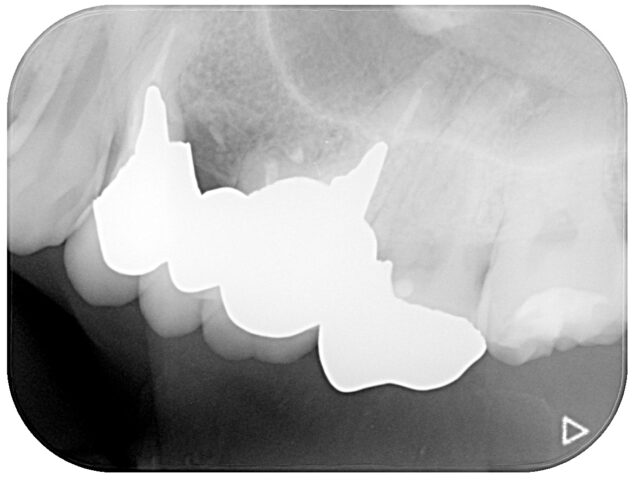 通常であればブリッジを除去して再根管治療を検討するケースですが、