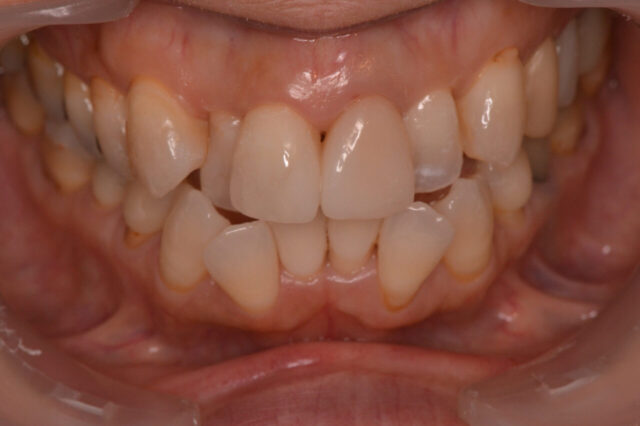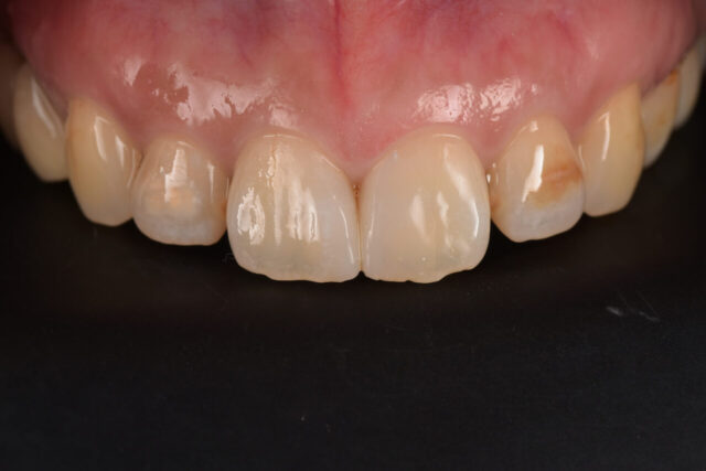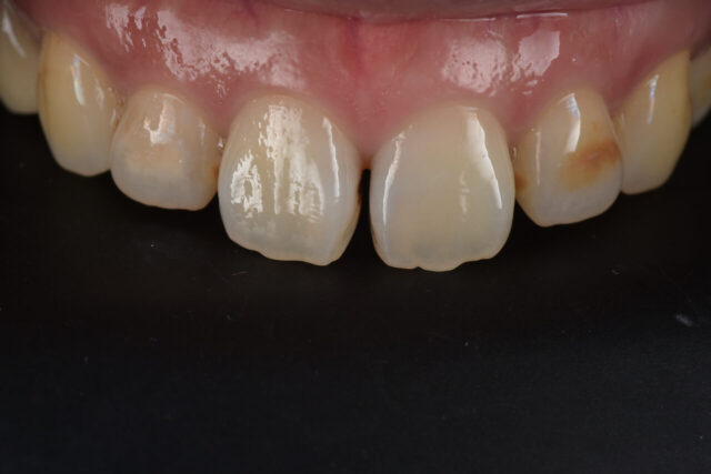 通常であれば、ラミネートベニアやセラミッククラウンによる修復が検討されるケースです。